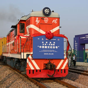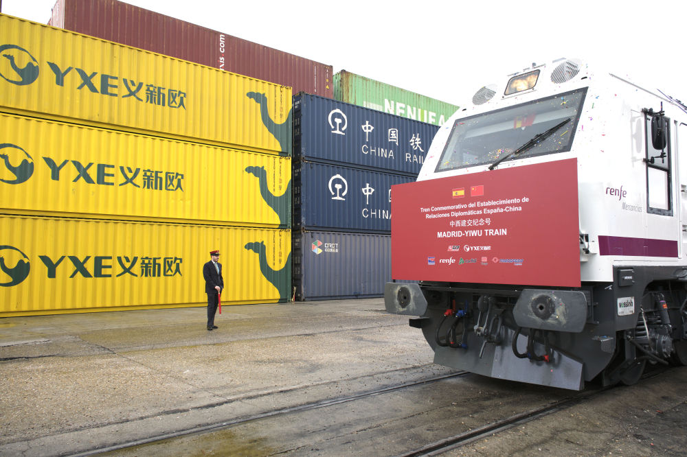 2023年3月9日,以“中西建交纪念号”特别命名的“义新欧”中欧班列从马德里鸣笛发车,与从义乌同时开出的列车双向而行,以庆祝中西建交50周年。