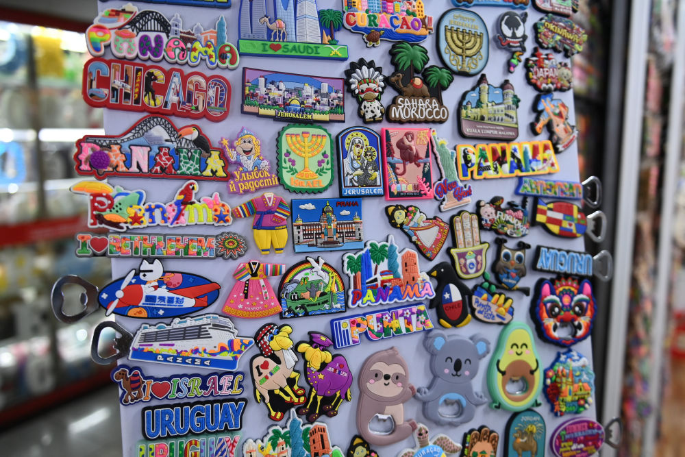 ↑义乌国际商贸城一家店铺拍摄的世界各国冰箱贴