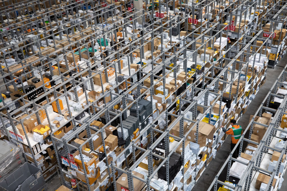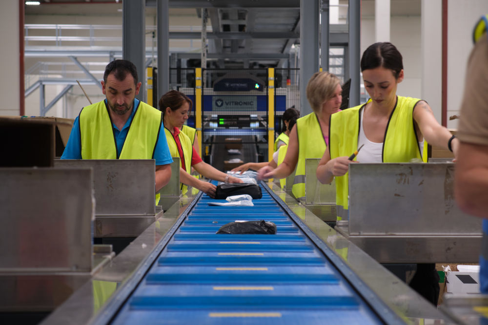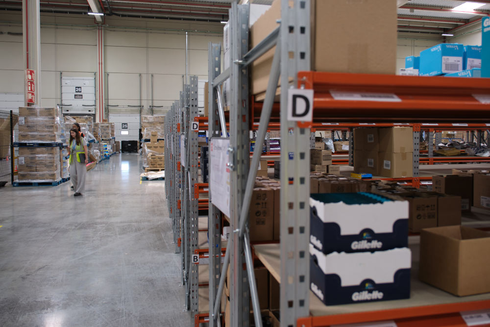 ↑工作人员在马德里的菜鸟海外仓库分拣商品