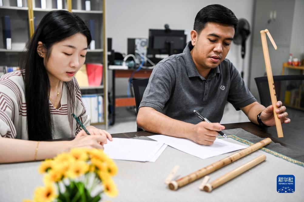 今年36岁的仁迪来自印尼万隆,2015年,他来到广西留学,攻读硕士研究生。2018年毕业后,他成为广西艺术学院专门教授甘美兰课程的外籍教师,同时兼任该校甘美兰乐团的首席。