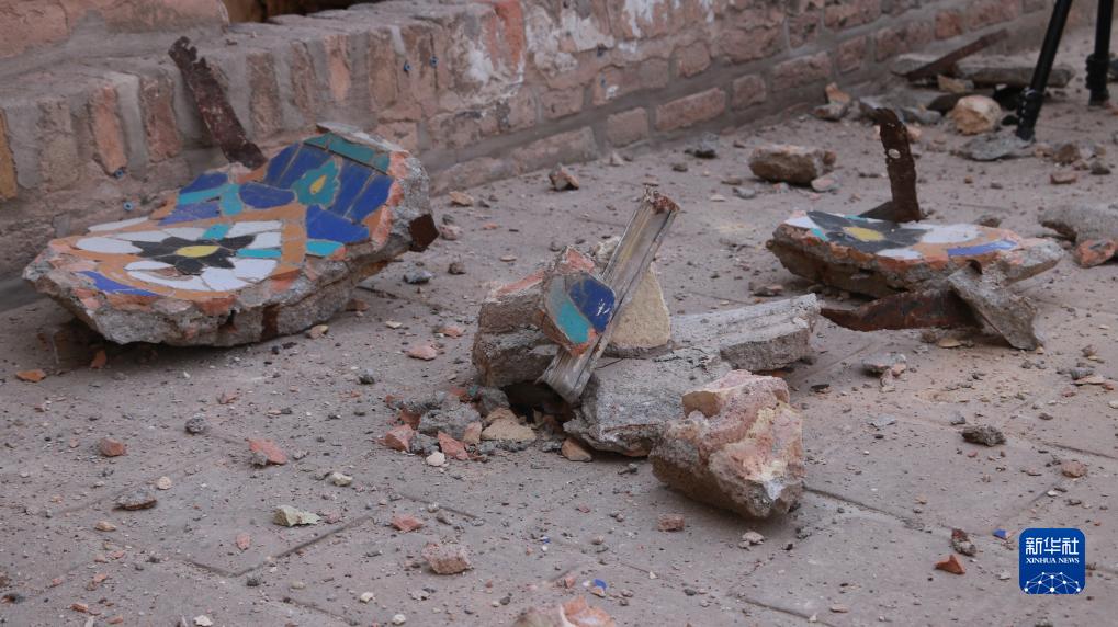 这是10月12日在阿富汗赫拉特省拍摄的赫拉特大清真寺的建筑碎片。