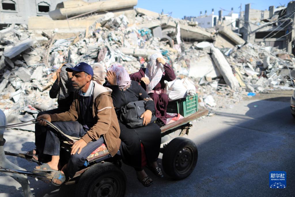 10月13日,在加沙地带南部地区,人们逃离家园。