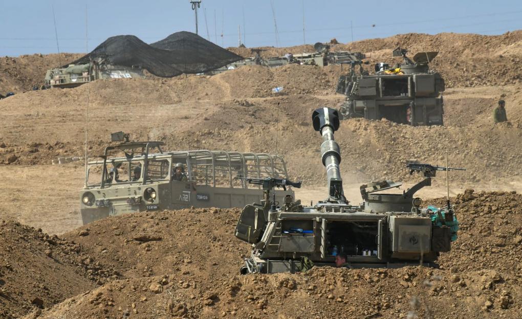 这是10月12日在加沙边境以色列一侧拍摄的集结的以军部队。新华社/基尼图片社