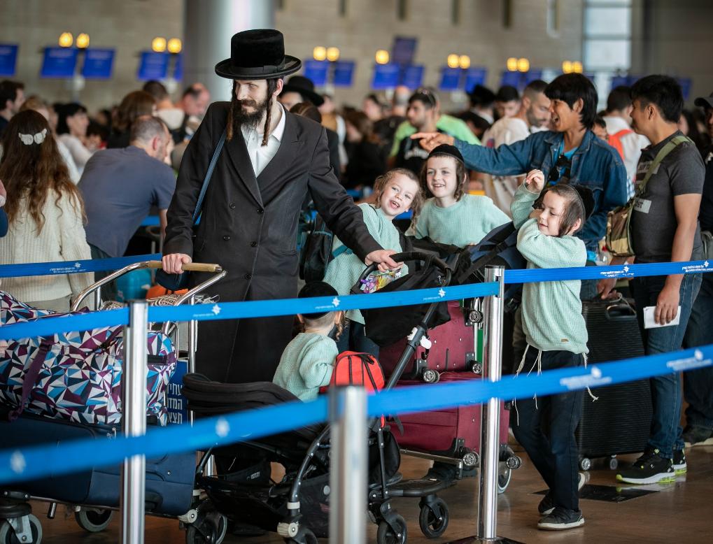 10月12日,旅客在以色列特拉维夫附近的本-古里安国际机场出发层等待值机。新华社记者陈君清摄