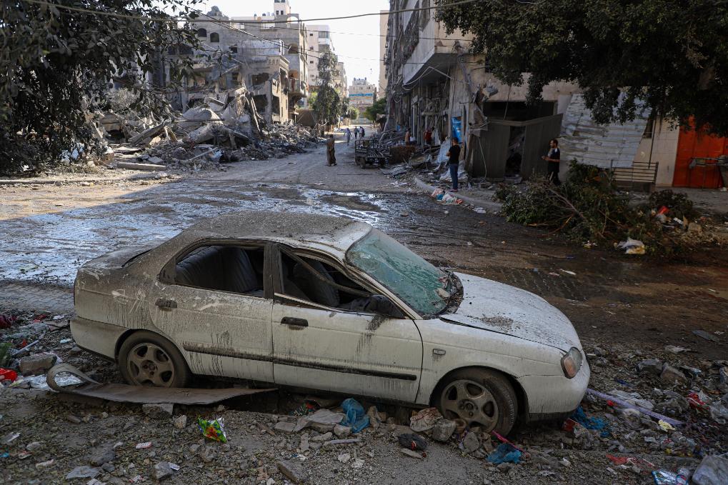 这是10月12日在加沙城拍摄的一辆被以色列军队空袭炸毁的汽车。新华社发(里泽克·阿卜杜勒贾瓦德摄)