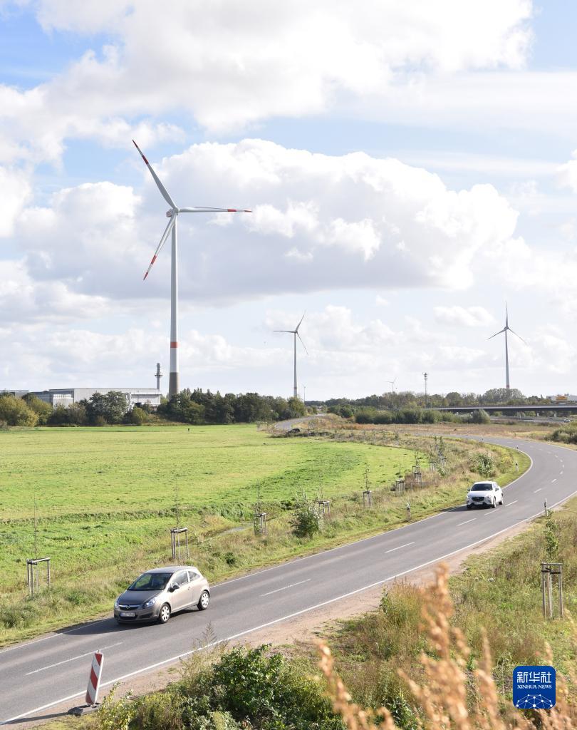 这是10月14日在德国勃兰登堡州拍摄的风电设施。