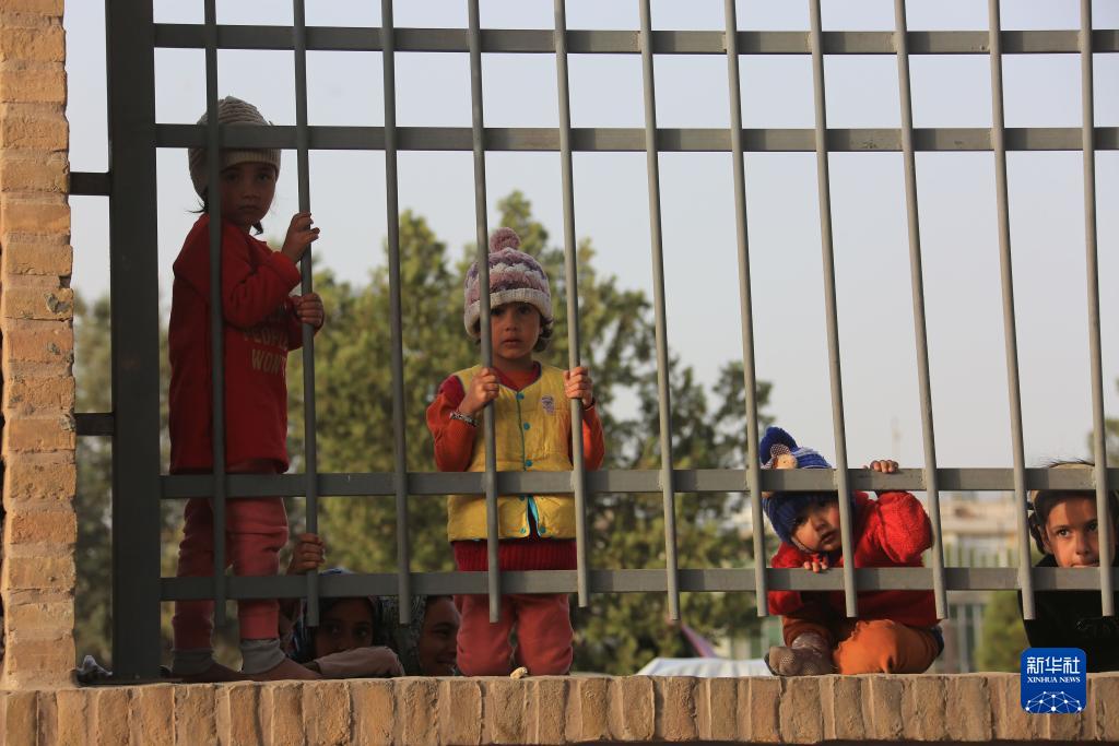 10月15日,阿富汗赫拉特省赫拉特市的孩子们在户外玩耍。