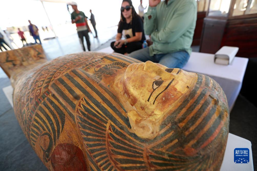 这是10月15日在埃及明亚省考古现场拍摄的彩绘木乃伊棺椁。