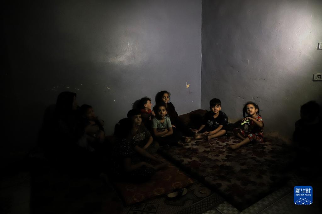 这是10月16日在加沙地带南部城市汗尤尼斯一处房屋内拍摄的儿童。