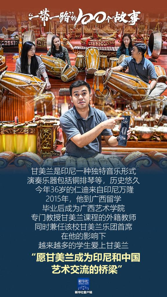 甘美兰是印尼一种独特音乐形式,演奏乐器包括铜排琴等,历史悠久。今年36岁的仁迪来自印尼万隆。2015年,他到广西留学,毕业后成为广西艺术学院专门教授甘美兰课程的外籍教师,同时兼任该校甘美兰乐团首席。在他的影响下,越来越多的学生爱上甘美兰。他说:“愿甘美兰成为印尼和中国艺术交流的桥梁。”(记者:曹祎铭)
