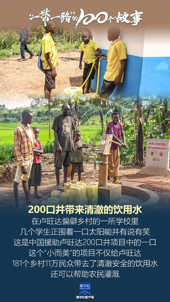 200口井带来清澈的饮用水。在卢旺达偏僻乡村的一所学校里,几个学生正围着一口太阳能井有说有笑。这是中国援助卢旺达200口井项目中的一口,这个“小而美”的项目不仅给卢旺达181个乡村11万民众带去了清澈安全的饮用水,还可以帮助农民灌溉。(记者:吉莉)