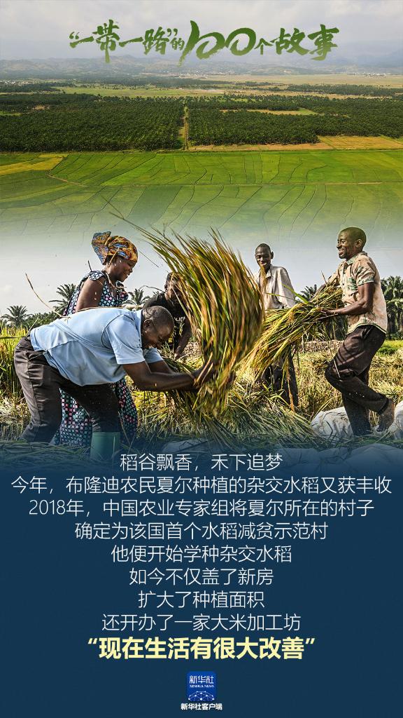 稻谷飘香,禾下追梦。今年,布隆迪农民夏尔种植的杂交水稻又获丰收。2018年,中国农业专家组将夏尔所在的村子确定为该国首个水稻减贫示范村,他便开始学种杂交水稻,如今不仅盖了新房,扩大了种植面积,还开办了一家大米加工坊,“现在生活有很大改善”。(记者:吉莉)
