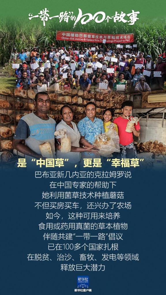 是“中国草”,更是“幸福草”。巴布亚新几内亚的克拉姆罗说,在中国专家的帮助下,她利用菌草技术种植蘑菇,不但买房买车,还兴办了农场。如今,这种可用来培养食用或药用真菌的草本植物,伴随共建“一带一路”倡议,已在100多个国家扎根,在脱贫、治沙、畜牧、发电等领域释放巨大潜力。