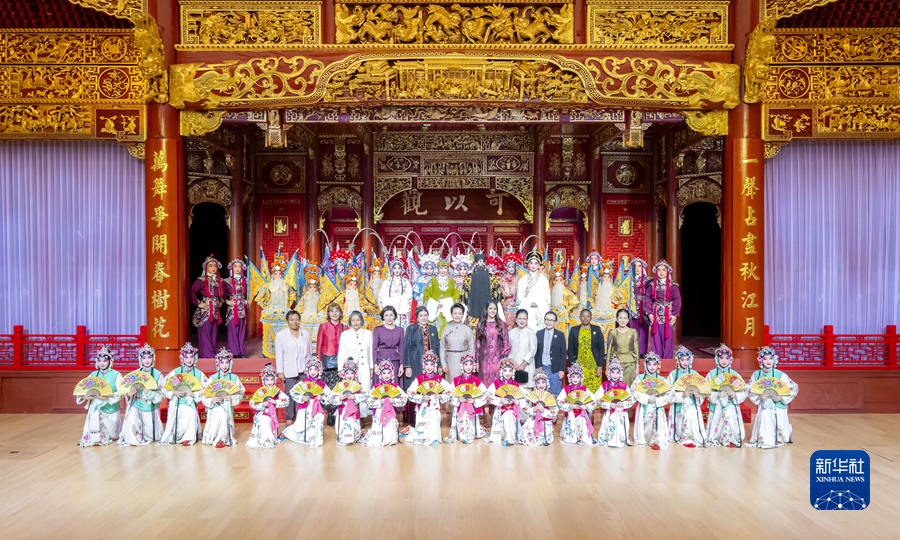 10月18日上午,国家主席习近平夫人彭丽媛邀请出席第三届“一带一路”国际合作高峰论坛的外方领导人夫人参观中国工艺美术馆(中国非物质文化遗产馆)。这是彭丽媛同外方领导人夫人与文艺演出演职人员合影。