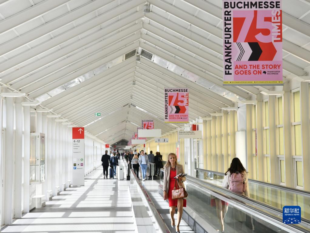 10月18日,人们走在德国法兰克福书展展馆内。