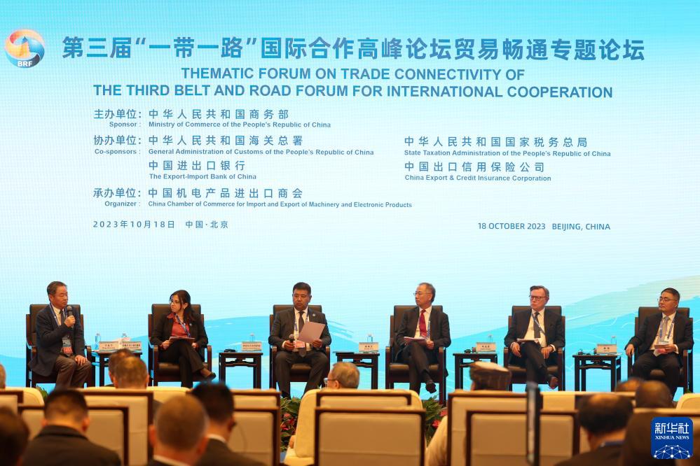 10月18日,第三届“一带一路”国际合作高峰论坛举行贸易畅通专题论坛。新华社记者 陈斌 摄