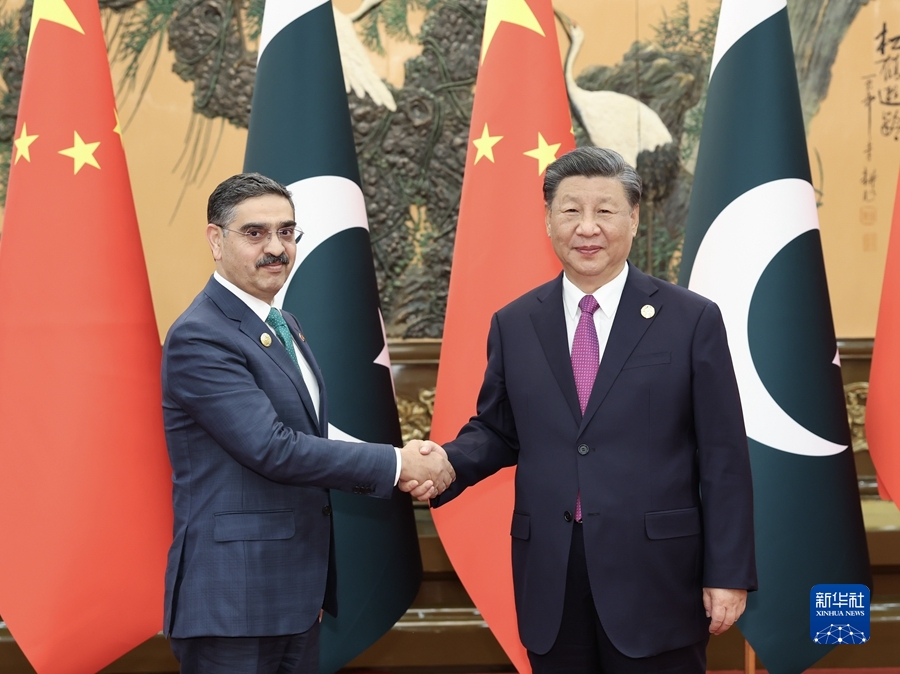 习近平指出,中国和巴基斯坦是全天候战略合作伙伴和铁杆朋友,巴历届政府都积极支持和参与“一带一路”合作。10年来,中巴经济走廊取得丰硕成果,有力推动巴基斯坦经济社会发展,成为共建“一带一路”的重要标志性工程。中方愿同巴方弘扬传统友谊,深化互利合作,加快构建新时代更加紧密的中巴命运共同体。