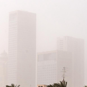 10月19日,科威特首都科威特城的建筑被沙尘暴笼罩。