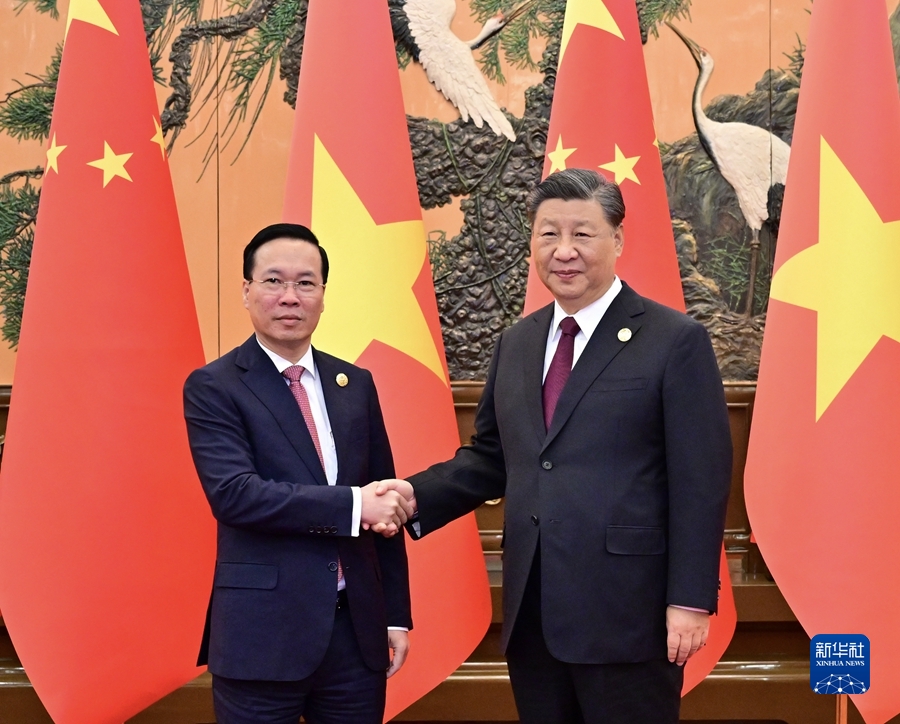 新华社北京10月20日电(记者温馨、陈旭)10月20日上午,国家主席习近平在人民大会堂会见来华出席第三届“一带一路”国际合作高峰论坛的越南国家主席武文赏。