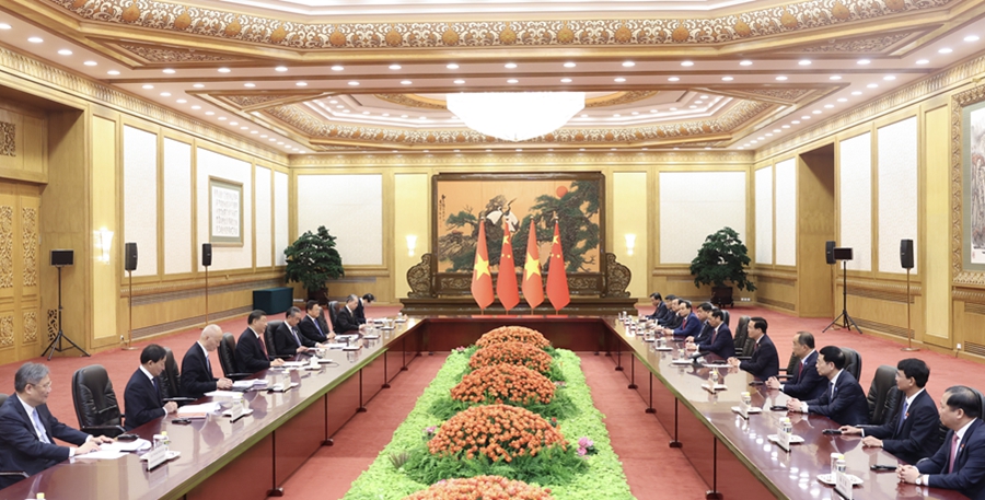 10月20日上午,国家主席习近平在北京人民大会堂会见来华出席第三届“一带一路”国际合作高峰论坛的越南国家主席武文赏。