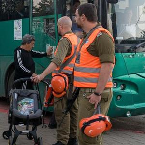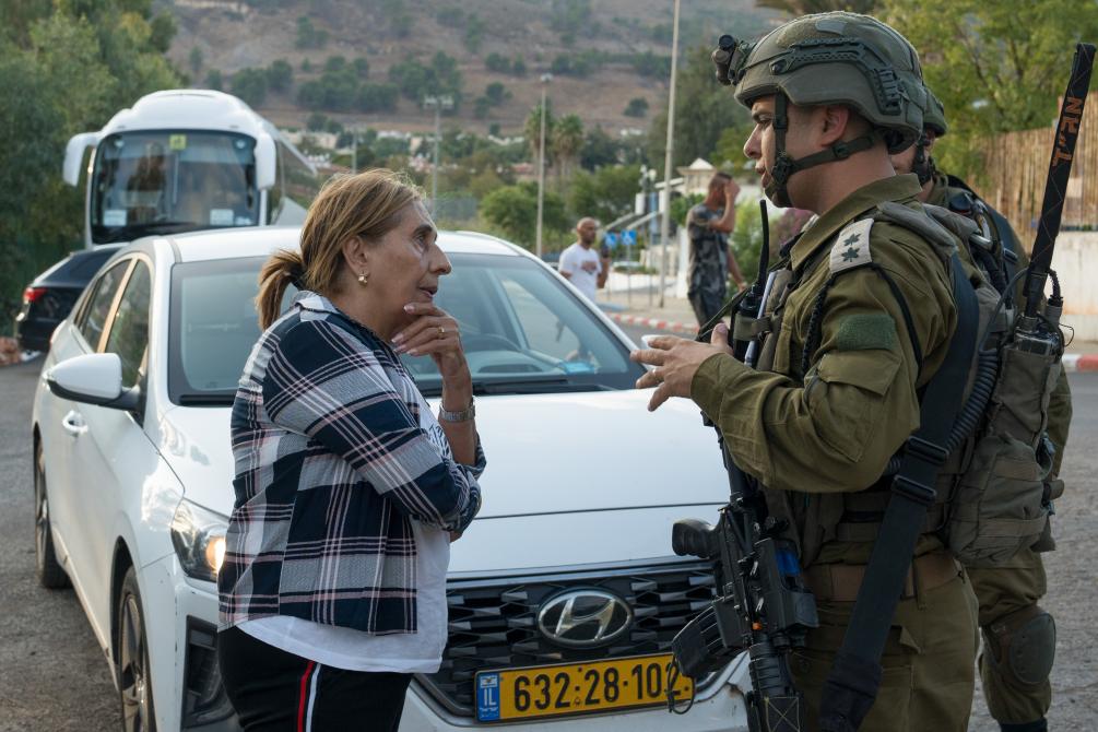 10月20日,以色列士兵在黎以边境谢莫纳镇帮助疏散居民。