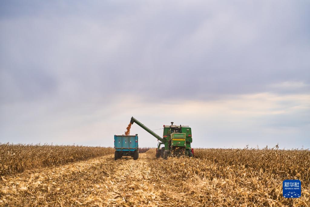 10月22日,在俄罗斯远东城市乌苏里斯克,农民操纵农机收割玉米。