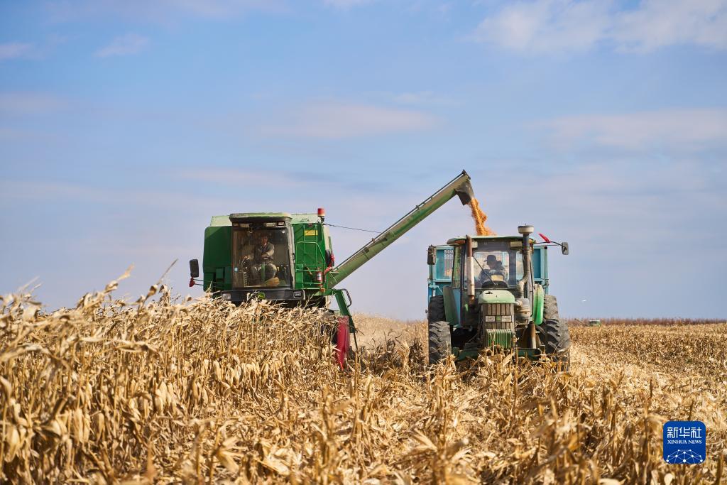 10月22日,在俄罗斯远东城市乌苏里斯克,农民操纵农机收割玉米。