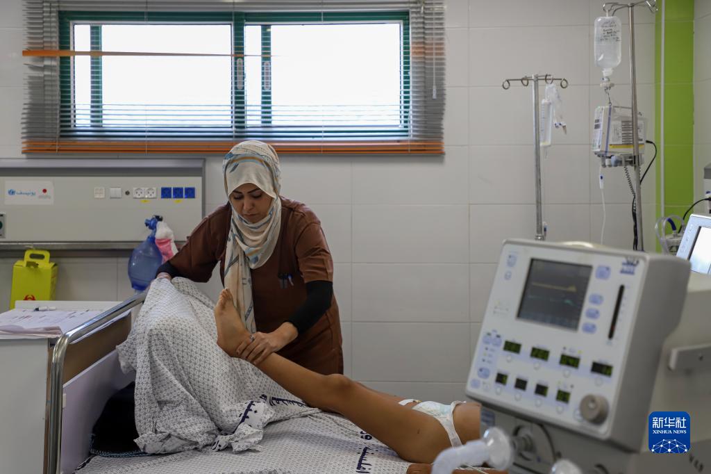 10月22日,在加沙地带南部城市汗尤尼斯的纳赛尔医院,医务人员救治在以色列空袭中受伤的儿童。