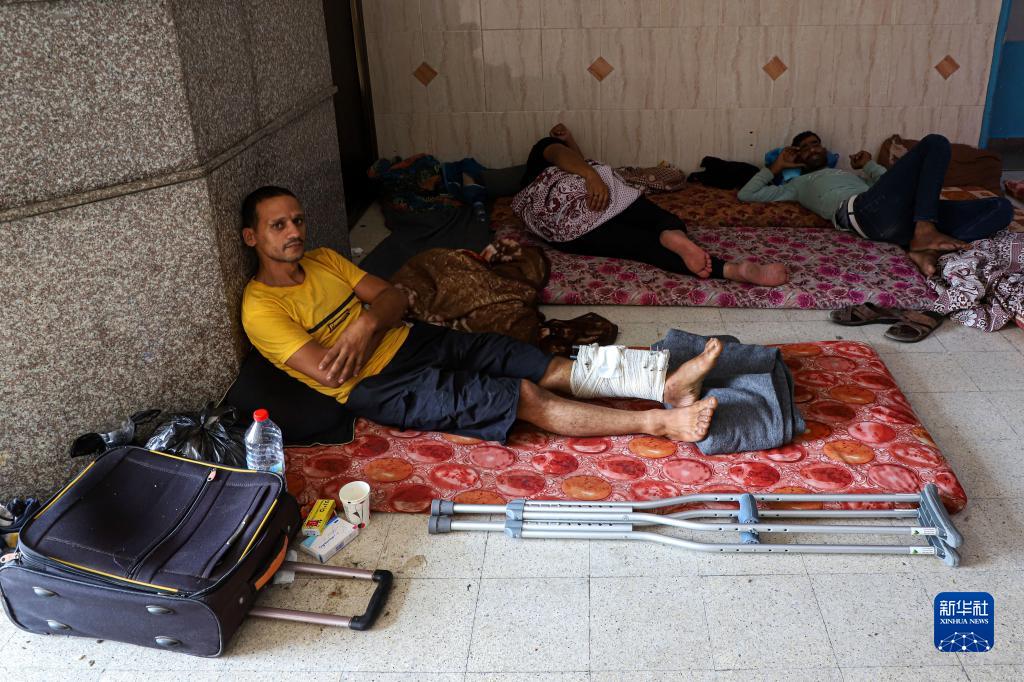 10月22日,在加沙地带南部城市汗尤尼斯的纳赛尔医院,在以色列空袭中受伤的巴勒斯坦人接受救治。