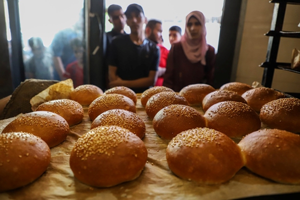 10月25日,在加沙地带南部城市汗尤尼斯,人们在一家烘焙店外排队购买面包。新华社发(里泽克·阿卜杜勒贾瓦德摄)