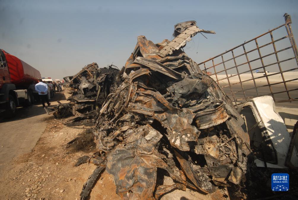 这是10月28日在埃及布海拉省的多车相撞事故现场拍摄的损毁车辆。