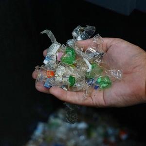 这是废弃塑料瓶经过破碎减量后得到的塑料片(10月30日摄)。新华社记者 林光耀 摄