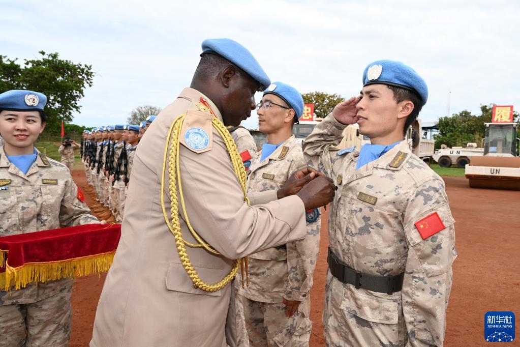 当日,联合国驻南苏丹特派团(联南苏团)举行授勋仪式,向中国第十三批赴南苏丹(瓦乌)维和工兵和医疗分队331名官兵授予联合国“和平荣誉勋章”,以表彰他们在执行维和任务期间的优异成绩和为维护南苏丹和平事业作出的突出贡献。
