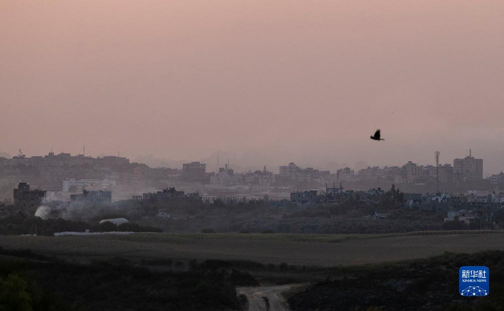 这是10月30日在加沙边境以色列一侧拍摄的加沙地带北部区域被袭后的情况。