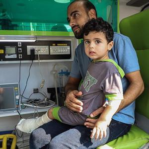 11月1日,受伤人员在拉法口岸加沙一侧的救护车中等待前往埃及。新华社发(里泽克·阿卜杜勒贾瓦德摄)