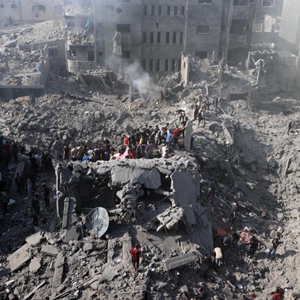 11月2日,在加沙地带中部的布赖杰难民营,人们在以色列空袭后展开营救工作。新华社发(亚西尔·库迪 摄)