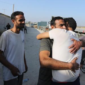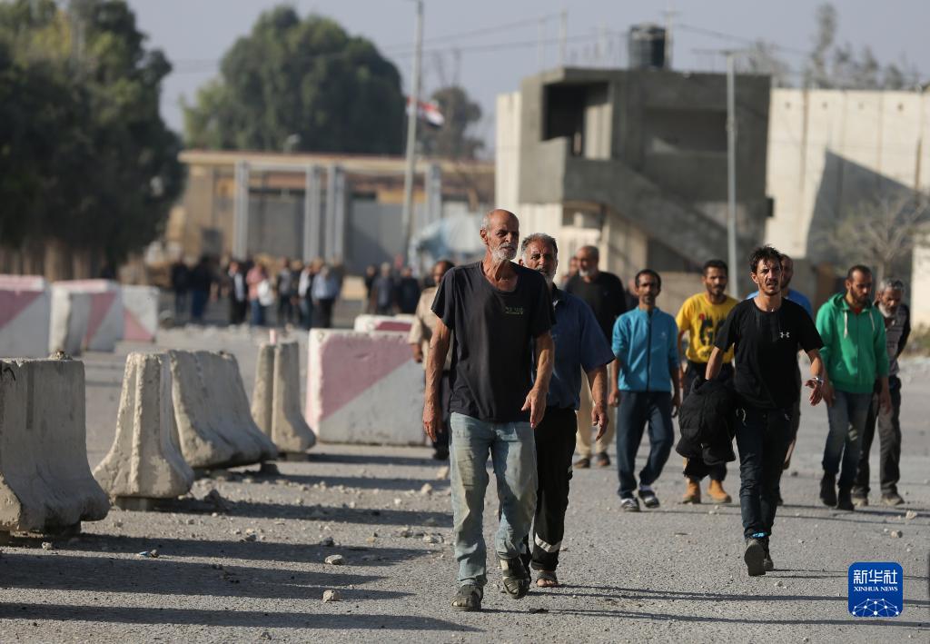 11月3日,遭以色列遣返的巴勒斯坦劳工抵达拉法口岸加沙一侧。
