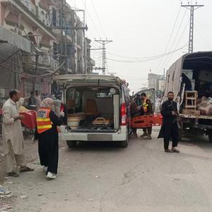 11月3日,在巴基斯坦开伯尔-普什图省德拉伊斯梅尔汗地区,安全人员和救援人员到达爆炸现场。新华社发
