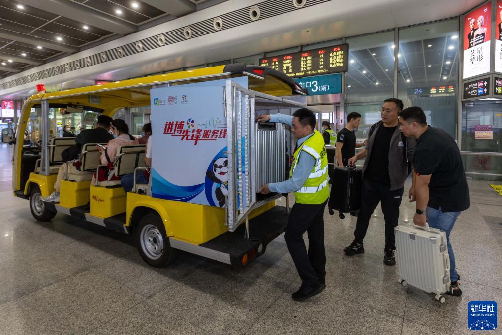 第六届中国国际进口博览会开幕在即,上海虹桥火车站在站厅内设立进博志愿者和进博服务窗口,在售票处开辟了进博会服务专区,并开行上海虹桥站进博直通车,参展旅客和相关工作人员出示相关证件即可免费搭乘,直接前往国家会展中心(上海)。