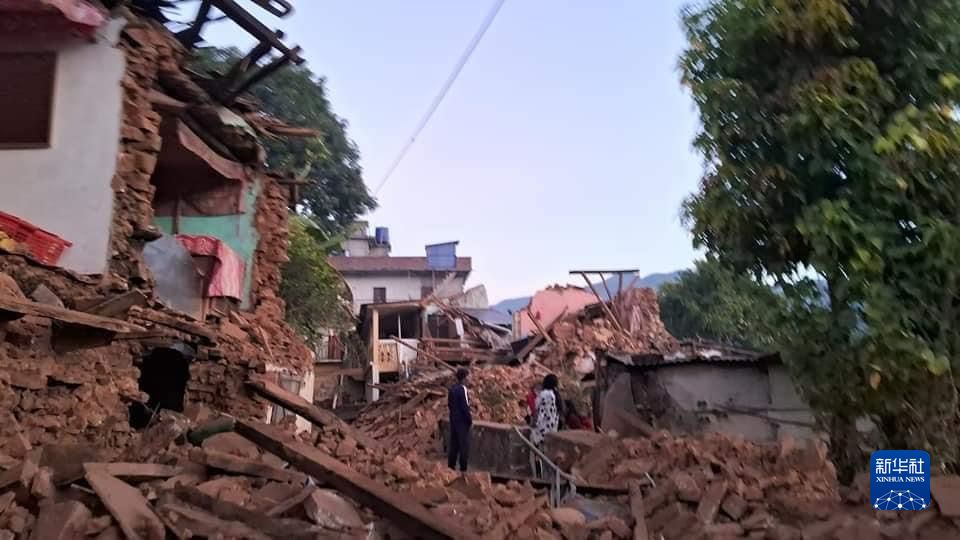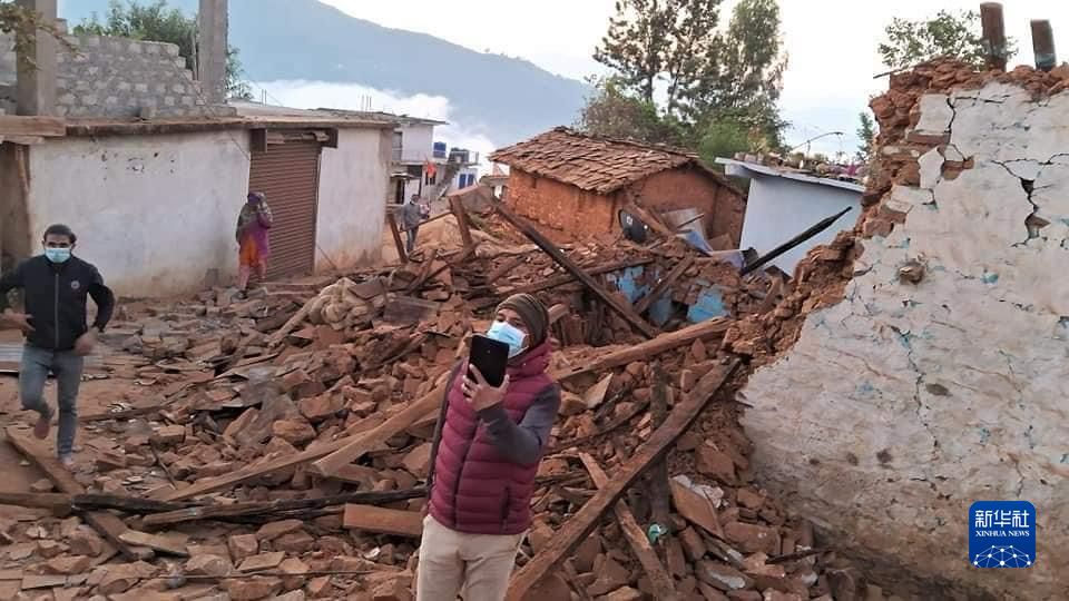 这是11月4日在尼泊尔西部扎泽尔果德拍摄的被地震损毁的房屋。新华社发(尼泊尔总理府供图)