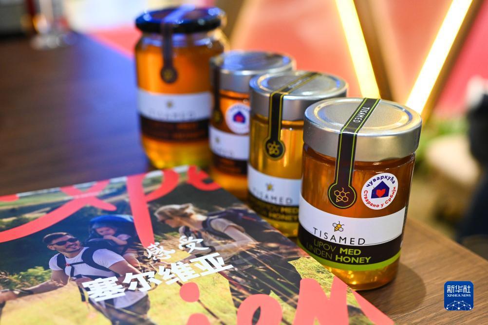 11月8日在第六届进博会上拍摄的塞尔维亚蜂蜜产品。