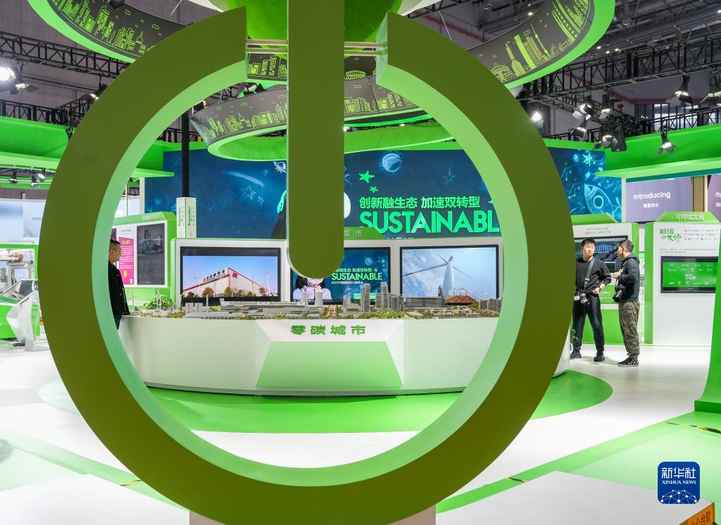 11月9日拍摄的施耐德电气展台展出的“零碳城市”愿景模型。