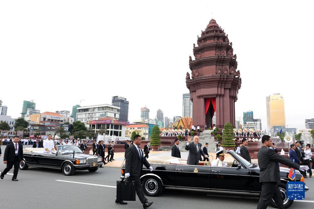 柬埔寨9日举行隆重仪式庆祝独立70周年。柬埔寨国王西哈莫尼、首相洪玛奈等领导人,多国驻柬使节和当地各界民众参加庆祝活动。
