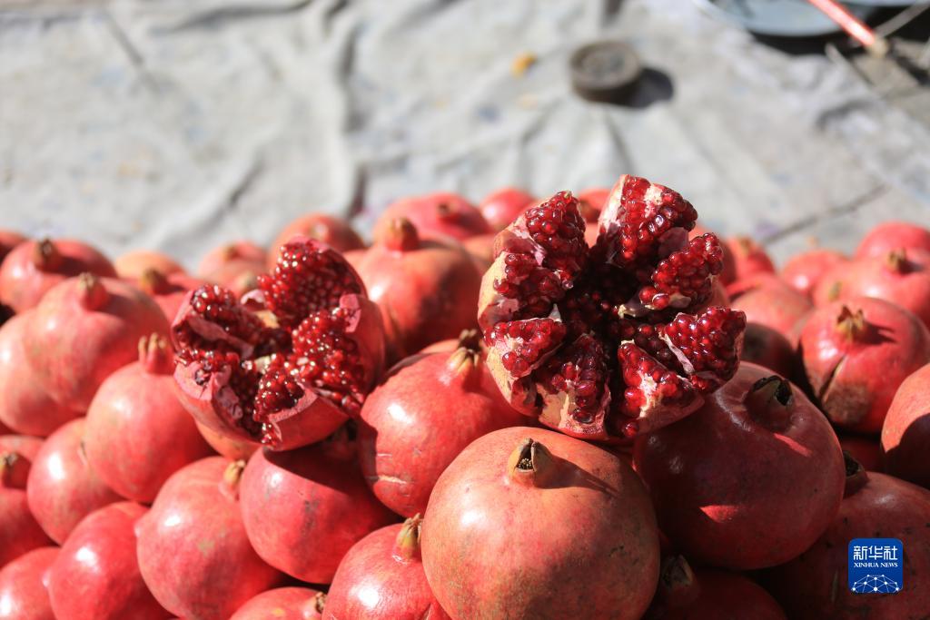 11月10日,在阿富汗首都喀布尔,一处摊位售卖产自阿富汗南部坎大哈省的石榴。