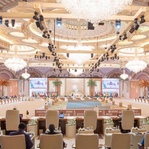 这是11月10日在沙特首都利雅得拍摄的首届沙特阿拉伯-非洲峰会现场。新华社发(沙特通讯社供图)