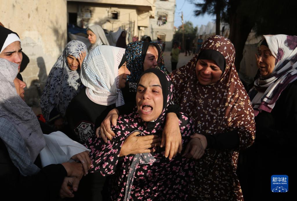 11月11日,在加沙地带南部城市拉法,人们悼念在冲突中遇难的亲人。