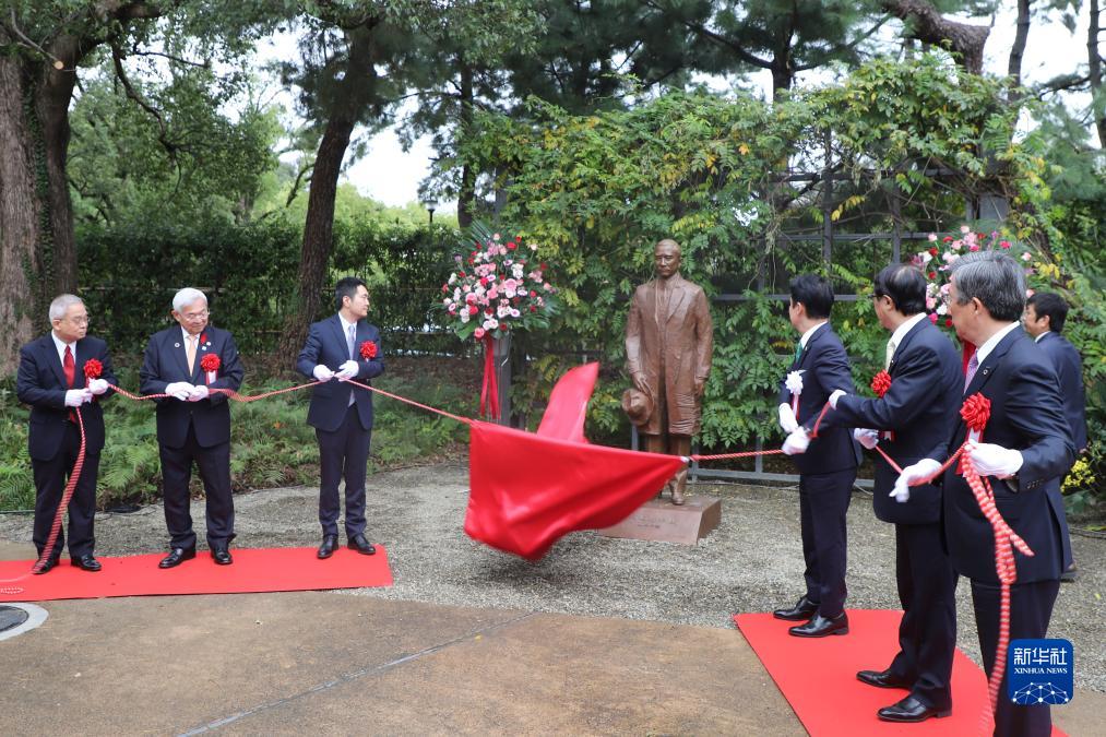 11月12日,嘉宾在日本福冈县北九州市安川敬一郎旧宅内为雕塑作品《孙文先生像》揭幕。新华社记者 郭丹 摄