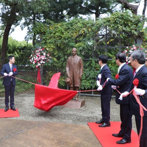 新华社日本北九州市11月13日电(记者郭丹)由中国美术馆馆长吴为山创作的雕塑作品《孙文先生像》12日在日本福冈县北九州市安川敬一郎旧宅落成揭幕。