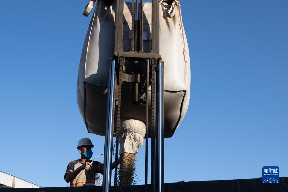 11月7日,在巴西东南部米纳斯吉拉斯州塞拉杜地区的一家咖啡种植者合作社里,工作人员将咖啡豆装车。新华社记者 王天聪 摄