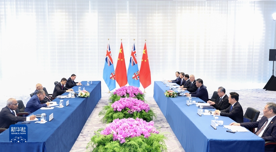 新华社旧金山11月16日电(记者宿亮 熊茂伶)当地时间11月16日上午,国家主席习近平在旧金山会见斐济总理兰布卡。